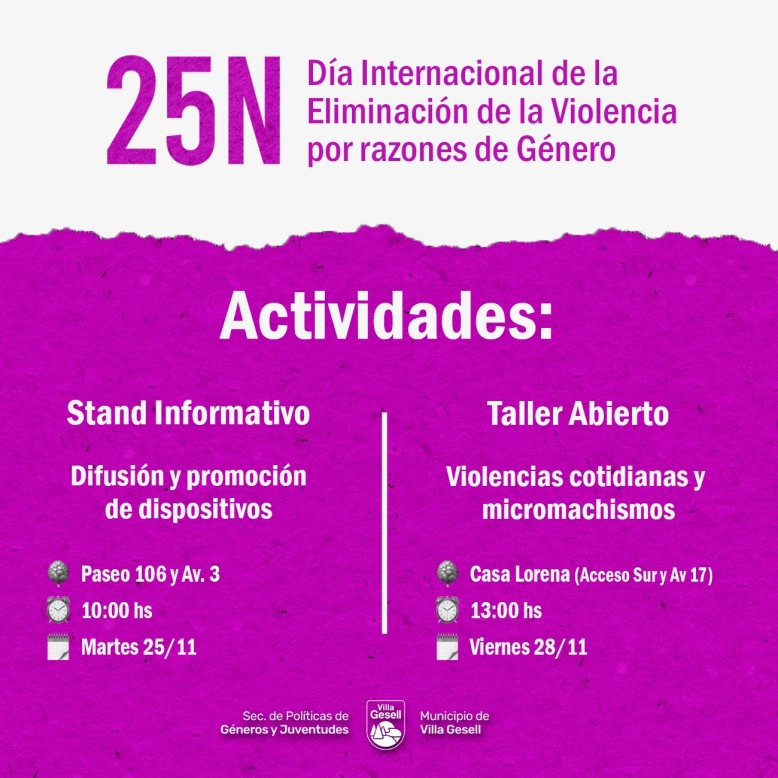 En el marco del Día Internacional de la Eliminación de la Violencia por Razones de Género, la Secretaría de Políticas de Géneros y Juventudes invita a la comunidad a participar de las actividades programadas para esta semana.