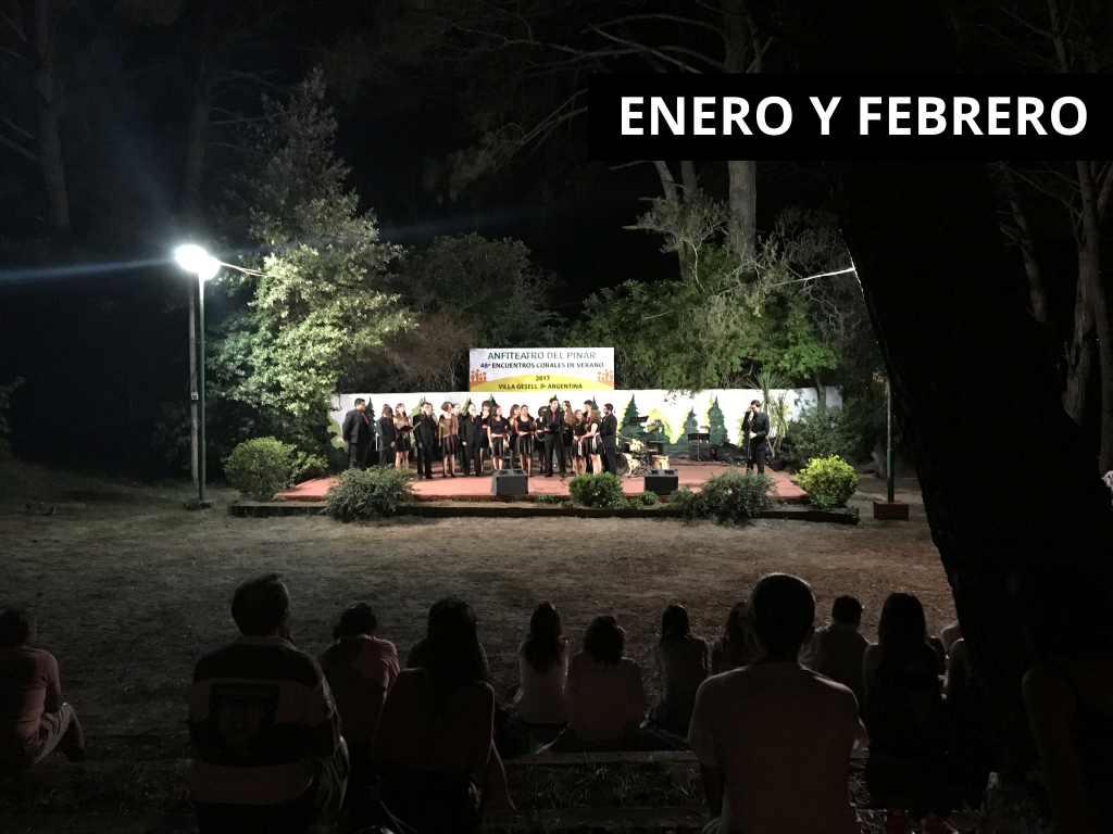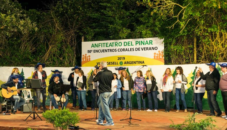Desde 1970, cada verano en Villa Gesell se realizan los Encuentros Corales, donde coros de todo el paÃs se reúnen en enero y febrero para compartir música y brindar conciertos gratuitos en el Anfiteatro del Pinar.