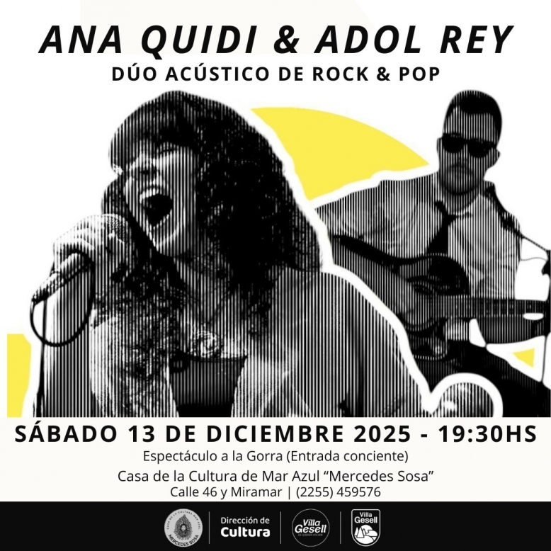 • 19:30 horas: Concierto de Ana Quidi & Adol Rey, quienes ofrecerán un espectáculo acústico de rock y pop en un formato íntimo.