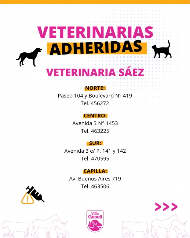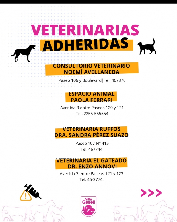 Las dosis podrán aplicarse en las siguientes veterinarias adheridas (los horarios deberán consultarse en cada establecimiento):
