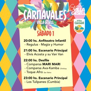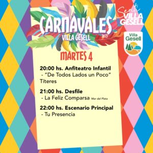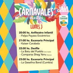 Una vez más, la ciudad se llenará de brillo, color y alegría para celebrar una nueva edición de los carnavales geselinos. Del sábado 1º al martes 4, en Boulevard, entre Paseos 101 y 103, se presentarán espectáculos variados, libres y gratuitos, para disfrutar en familia.