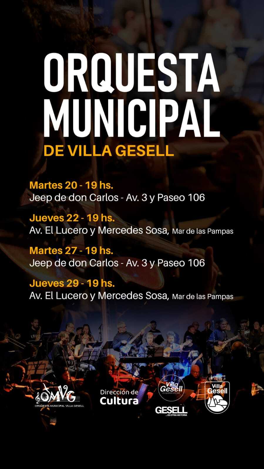La Orquesta Municipal continúa desarrollando su ciclo de espectáculos de verano al aire libre, con presentaciones programadas en Villa Gesell y Mar de las Pampas, destinadas a residentes y turistas.