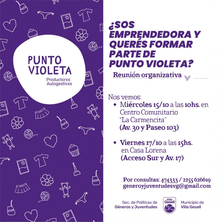 La Secretaría de Políticas de Género y Juventudes invita a emprendedoras y productoras autogestivas locales a sumarse a la próxima edición de la Feria Punto Violeta, un espacio destinado a la promoción del trabajo independiente y la economía con perspectiva de género.