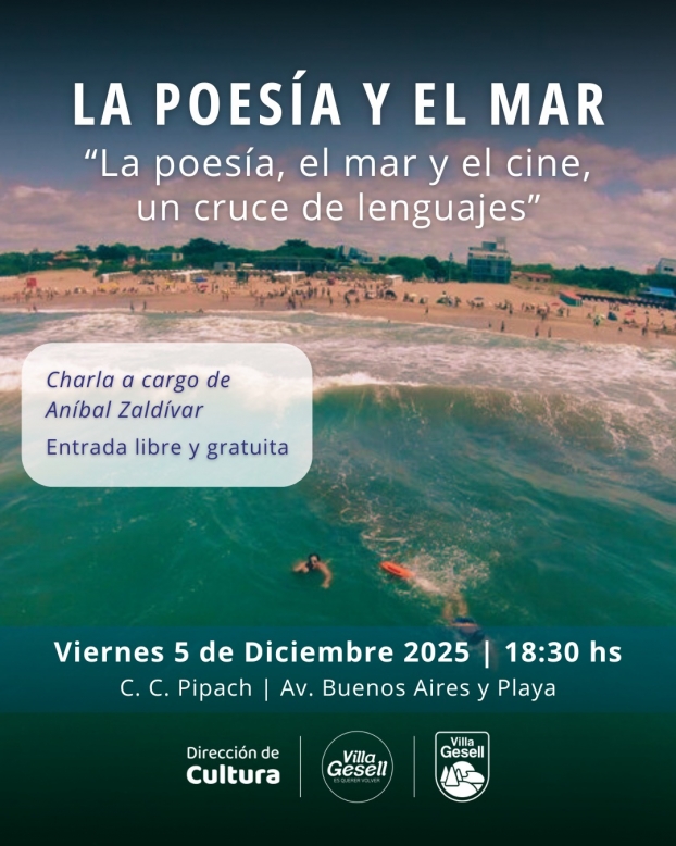El viernes 5 de diciembre, el Centro Cultural Pipach será escenario de una nueva edición del ciclo “La Poesía y el Mar”, que en esta oportunidad ofrecerá la charla “La poesía, el mar y el cine: un cruce de lenguajes”, a cargo de Aníbal Zaldívar.