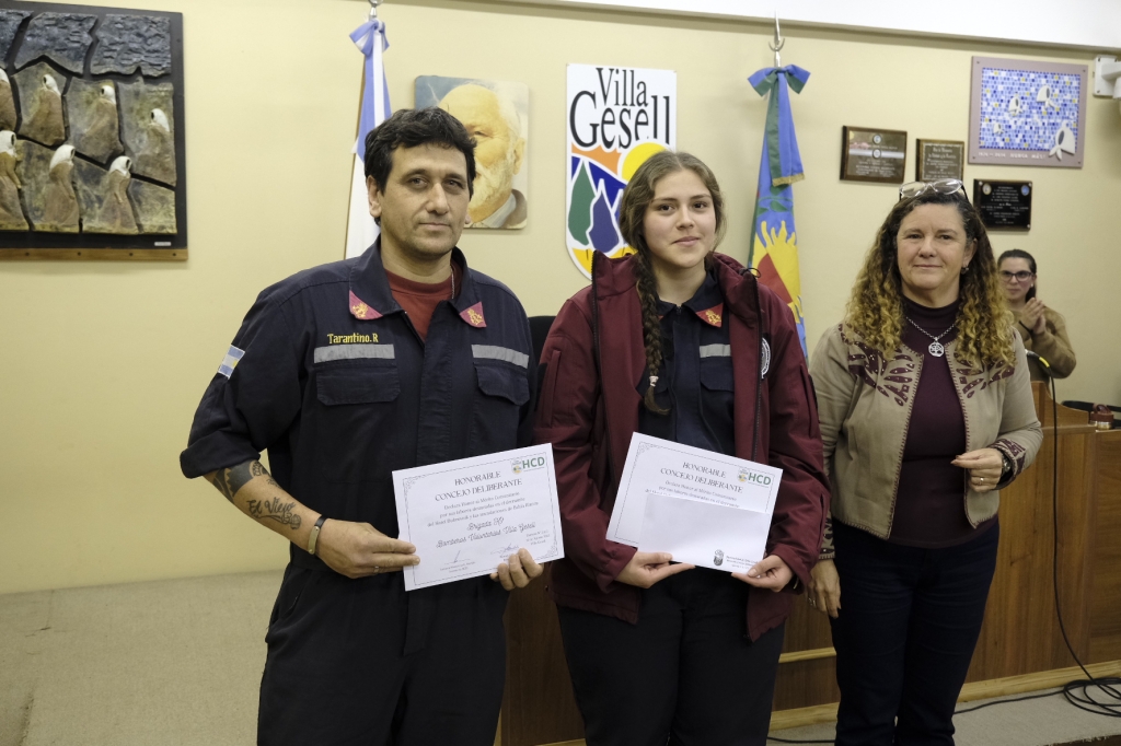 El Honorable Concejo Deliberante (HCD) de Villa Gesell entregó distinciones a miembros destacados del cuerpo de Bomberos local, reconociendo su compromiso y esfuerzo en el servicio a la comunidad.