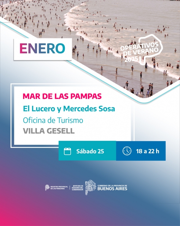 Este sábado 25 de enero, de 18:00 a 22:00 horas, habrá una jornada de atención en la oficina de Turismo de Mar de las Pampas, ubicada en El Lucero y Mercedes Sosa. Además, del 27 de enero al 1º de febrero, de 15:00 a 20:00 horas, se brindará atención en el Parador Recreo, en Paseo 112 y Playa.