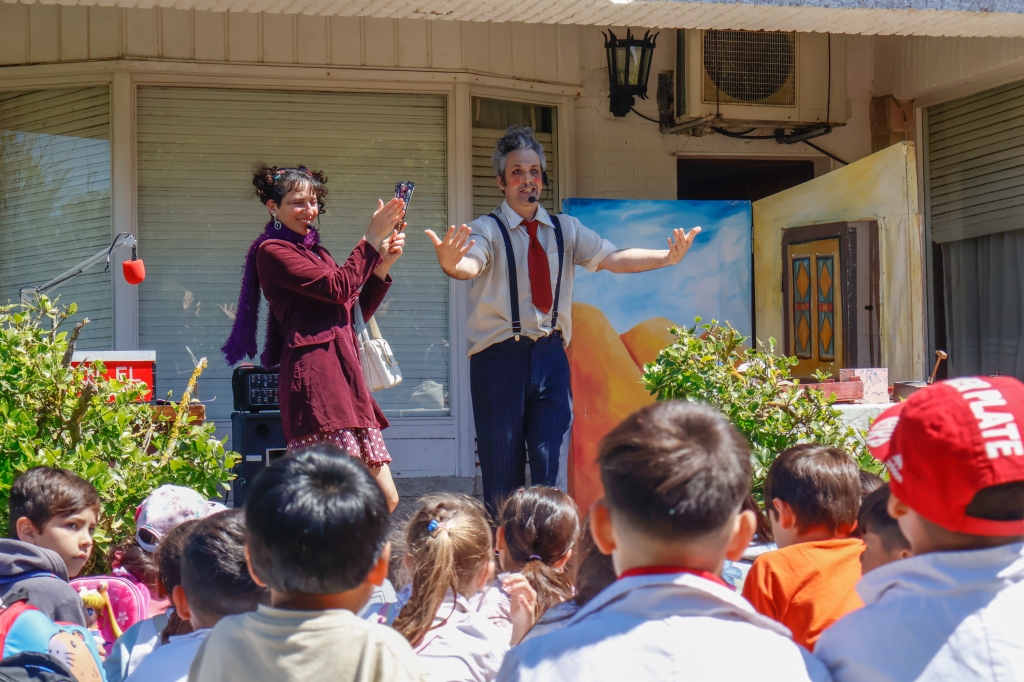 La presentación estuvo a cargo de la compañía de teatro “Sonidos en la arena”, de Mar Azul, que trabajó junto a las guías del museo en la elaboración del relato. Desde hace dos años, el grupo realiza funciones en museos, escuelas y fiestas populares, y en esta oportunidad se sumó a las visitas educativas del nivel primario, brindando una experiencia enriquecedora y divertida para las infancias.