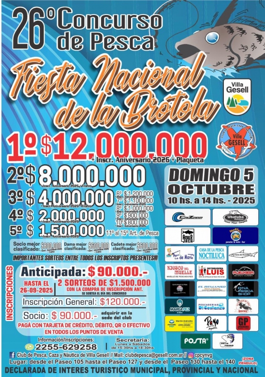 El concurso de pesca más esperado de la región se realizará el domingo 5 de octubre en la costa geselina, con más de 30 millones de pesos en premios y la participación de más de mil pescadores.