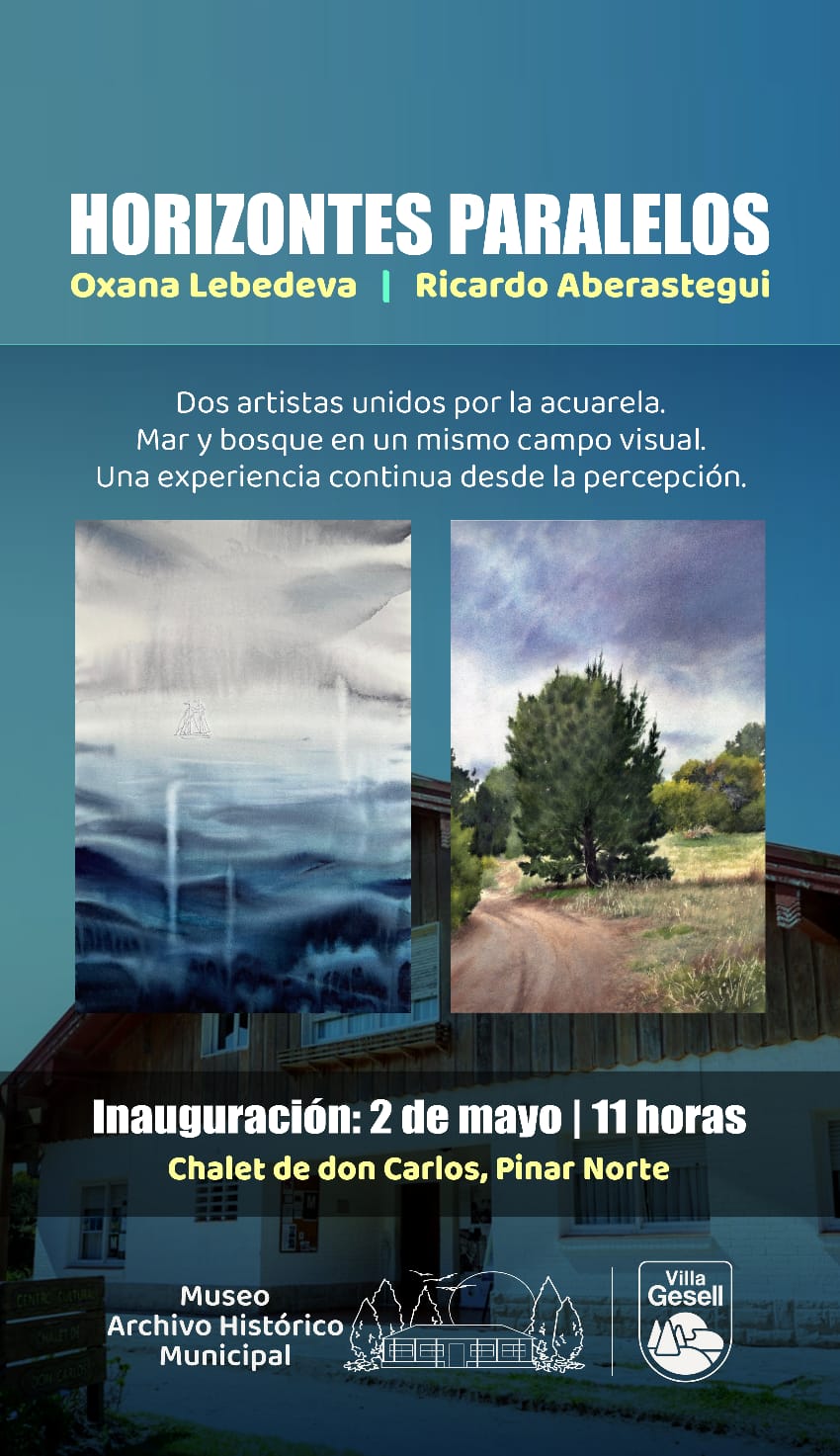 La comunidad geselina podrá disfrutar de una nueva propuesta artística con la inauguración de la muestra “Horizontes Paralelos”, una exposición que reúne obras de los artistas Oxana Lebedeva y Ricardo Aberastegui, unidos por la técnica de la acuarela.
