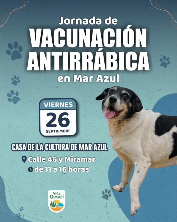 En el marco del Día Mundial contra la Rabia, que se conmemora cada 28 de septiembre, se realizará una jornada de vacunación antirrábica libre y gratuita el próximo 28 de septiembre, de 11:00 a 16:00 horas, en la Casa de la Cultura “Mercedes Sosa” de Mar Azul (calle 46 y Miramar).