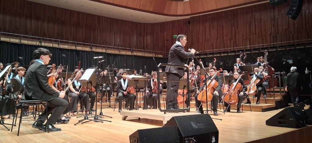 En el marco del concierto “La Sinfonía Necesaria”, ofrecido por los Becarios de SOIJAr en La Ballena Azul del Centro Cultural Kirchner, dos jóvenes de la Escuela de Músicos de Villa Gesell, Juliana Flores y Gonzalo Martínez, participaron de esta destacada presentación que reunió a talentos de distintos puntos del país.
