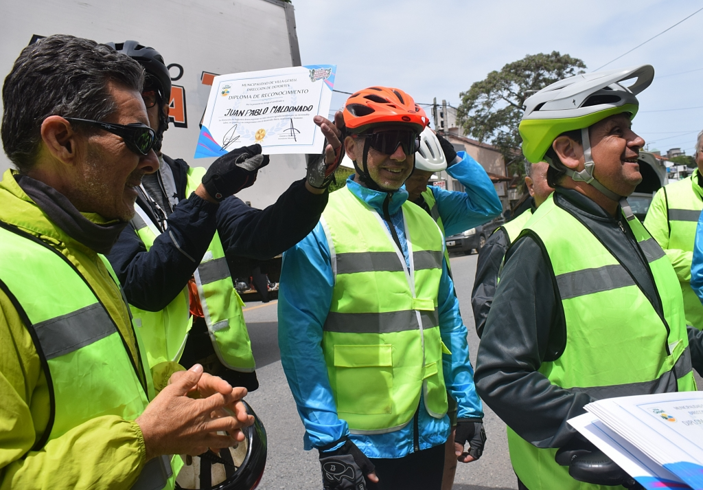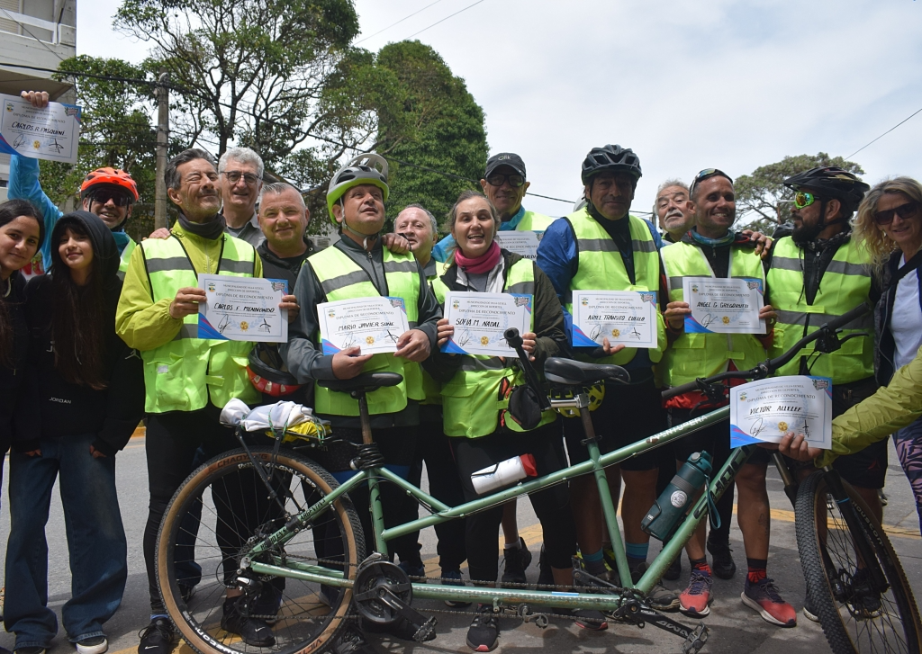 En el marco del recorrido que une La Plata con Mar del Plata, el grupo de ciclistas “Atre-verse”, conformado por personas con discapacidad visual y sus guías, realizó una nueva escala en Villa Gesell, donde fue recibido por el intendente Gustavo Barrera y el director de Deportes José Demaro.