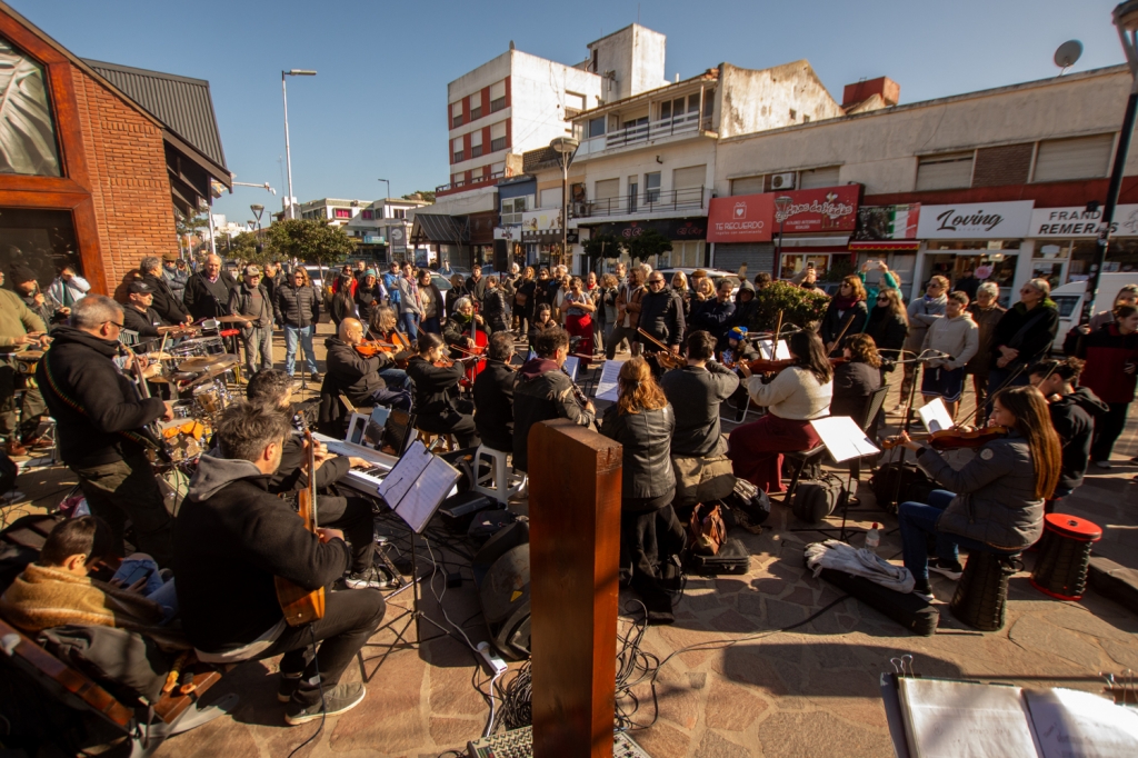 La Orquesta y Coro Municipal volvió a llenar de música y emoción el corazón de Villa Gesell con una presentación en vivo en la peatonal geselina. Frente a la emblemática estatua de Don Carlos (Paseo 106 y Avenida 3), vecinos, vecinas y turistas disfrutaron de un espectáculo libre y gratuito que transformó la tarde en una verdadera fiesta cultural.