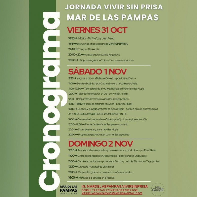 Para celebrar y visibilizar este concepto, se llevará a cabo el fin de semana “Vivir Sin Prisa”, desde el viernes 31 de octubre hasta el domingo 2 de noviembre, con una amplia programación de actividades culturales, musicales y gastronómicas.