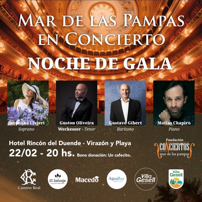 La Fundación Mar de las Pampas en Conciertos en conjunto con la Municipalidad de Villa Gesell y prestadores turísticos invitan a una noche inolvidable. El concierto será el próximo sábado 22 de febrero a las 20 hs en el Auditorio del Hotel Rincón del Duente.