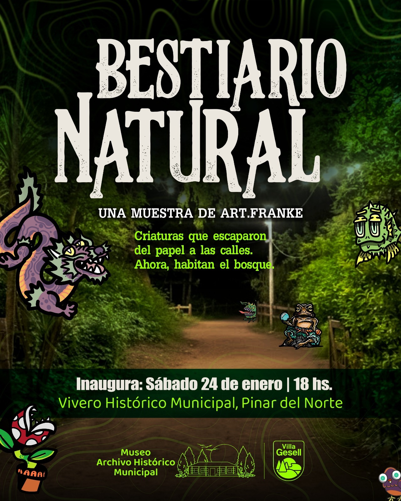 El Vivero Histórico del Pinar del Norte será sede de una nueva propuesta cultural con la inauguración de la muestra “Bestiario Natural”, presentada por el artista Art Franke, con obras del ilustrador y diseñador gráfico Franco Escobar.