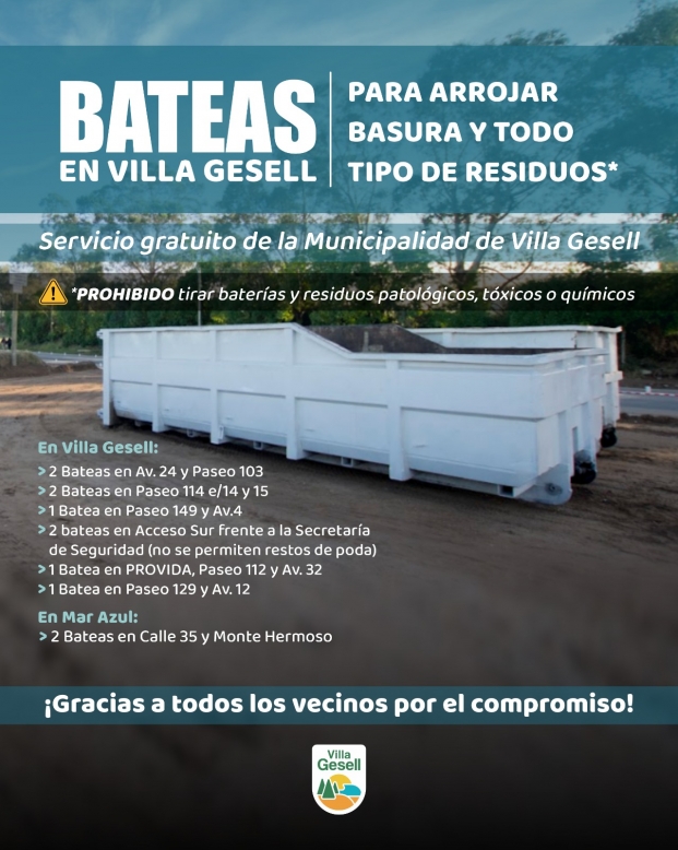 Se recuerda a residentes y visitantes que, en el marco de la Ordenanza N.° 2160, se encuentra terminantemente prohibido arrojar, depositar o acopiar residuos de cualquier tipo en la vía pública, espacios verdes y playas, así como realizar cualquier forma de disposición que no esté contemplada dentro de los métodos autorizados de recolección y contención.