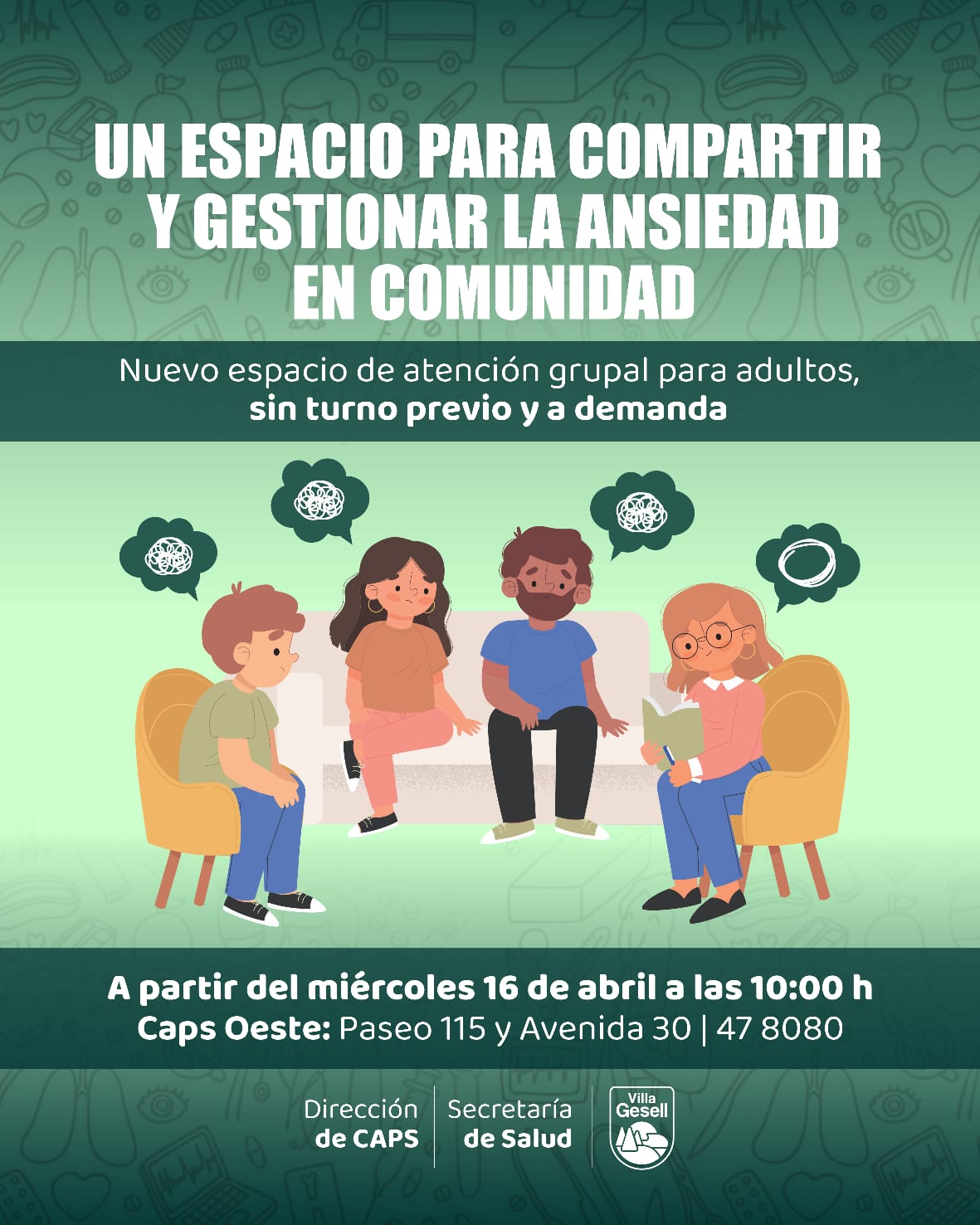 La Dirección de Atención Primaria de la Salud pondrá en marcha un nuevo espacio de atención grupal destinado a personas adultas, orientado a la gestión de la ansiedad.
