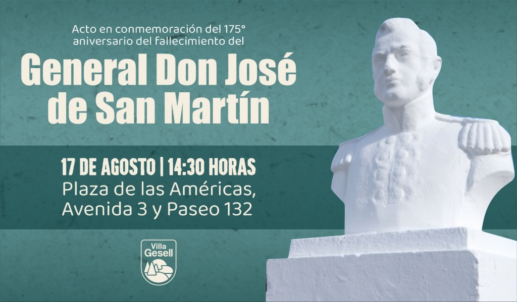 La Municipalidad de Villa Gesell anunció la realización de un acto oficial en homenaje al General Don José de San Martín, al cumplirse el 175.º aniversario de su fallecimiento.