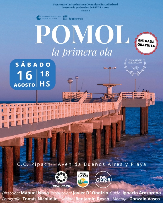 El próximo sábado 16 de agosto a las 18:00 horas, Villa Gesell disfrutará de una jornada libre y gratuita de cine en el Centro Cultural Pipach (Av. Buenos Aires y Playa), con la proyección del documental “Pomol, la primera ola” (2021), dirigido por Javier D’Onofrio, quien estará presente durante la función.