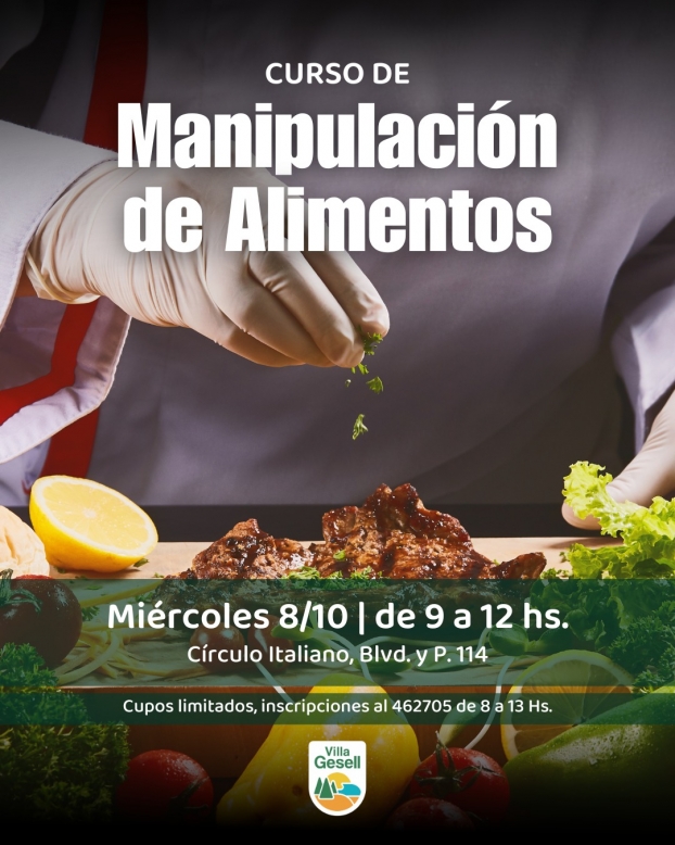 La Dirección de Bromatología, a cargo de Nazareno Álvarez, invita a la comunidad a participar de una nueva edición del curso de manipulación de alimentos, que se llevará a cabo el miércoles 8 de octubre, de 9:00 a 12:00 horas, en el Círculo Italiano (Boulevard y Paseo 114).