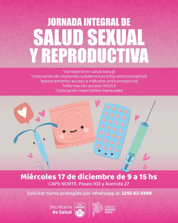El miércoles 17 de diciembre, de 9 a 15 horas, se llevará adelante una jornada integral de salud sexual y reproductiva en el CAPS Norte, ubicado en Paseo 103 y Avenida 27.