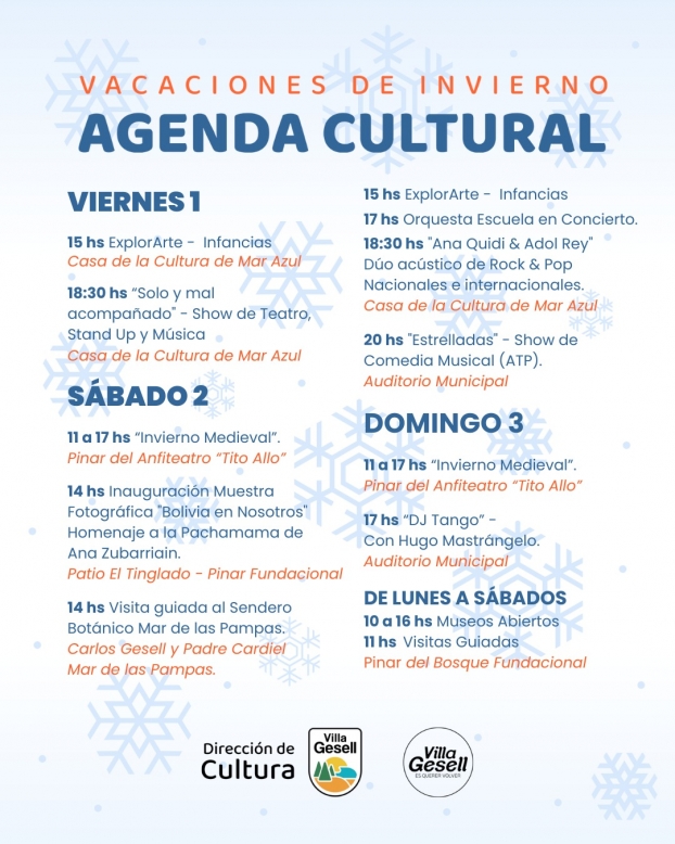 Villa Gesell se prepara para despedir las vacaciones de invierno con una amplia propuesta cultural para todos los gustos y edades, que incluye teatro, música, visitas guiadas, espectáculos infantiles y el gran cierre de la tercera edición de Invierno Medieval.