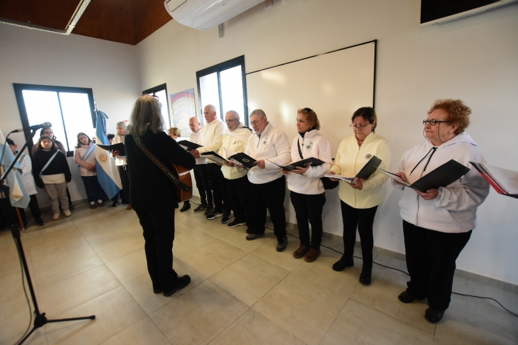 La ceremonia comenzó con la entonación del Himno Nacional Argentino, seguida de una presentación del Coro Otoñal, bajo la dirección de Sandra Río, que ofreció un repertorio musical en homenaje a la ciudad.