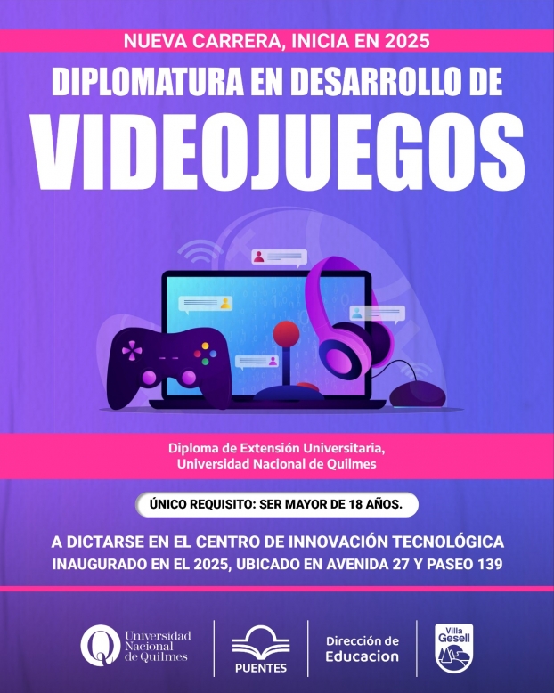Villa Gesell continúa expandiendo su oferta educativa con la incorporación de una Diplomatura en Desarrollo de Videojuegos, gracias a un convenio firmado entre la Municipalidad de Villa Gesell y la Universidad Nacional de Quilmes (UNQUI). La cursada se llevará a cabo en el Centro de Innovación Tecnológica, inaugurado a principios de este año, un espacio dedicado a la formación en tecnologías emergentes.