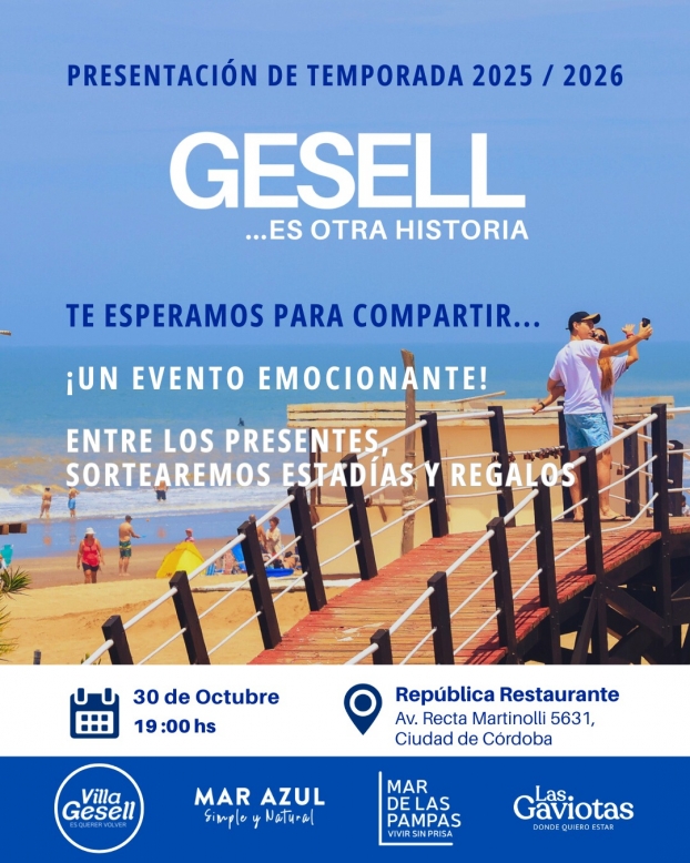 Durante cada evento se presentarán las novedades de la Temporada 2025, los próximos eventos culturales y deportivos, y se realizarán sorteos de estadías, vouchers y obsequios aportados por el sector privado geselino.