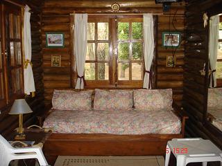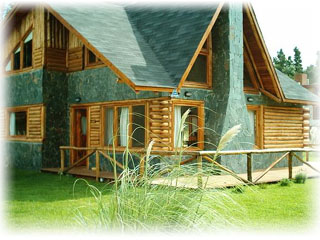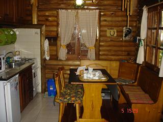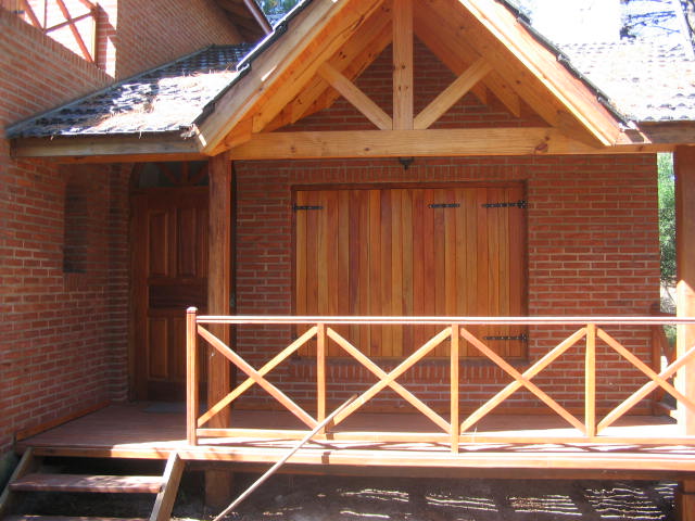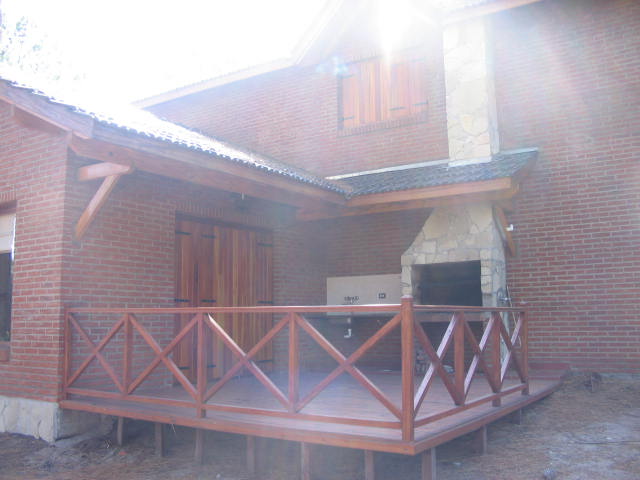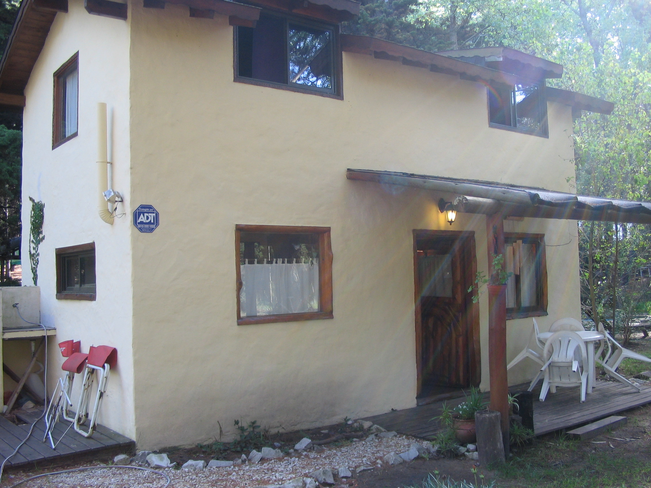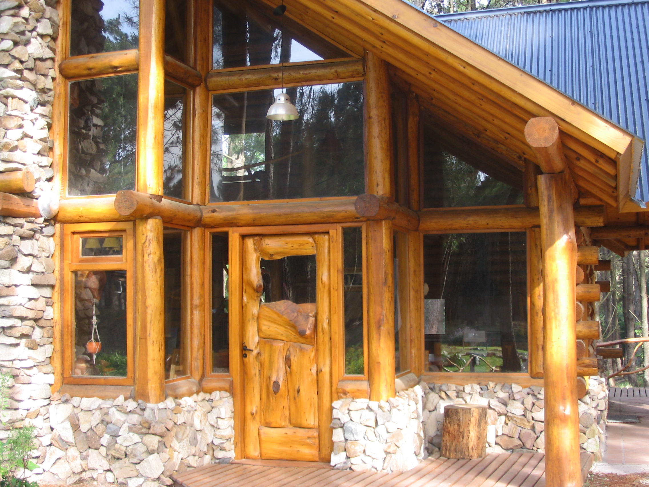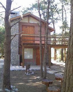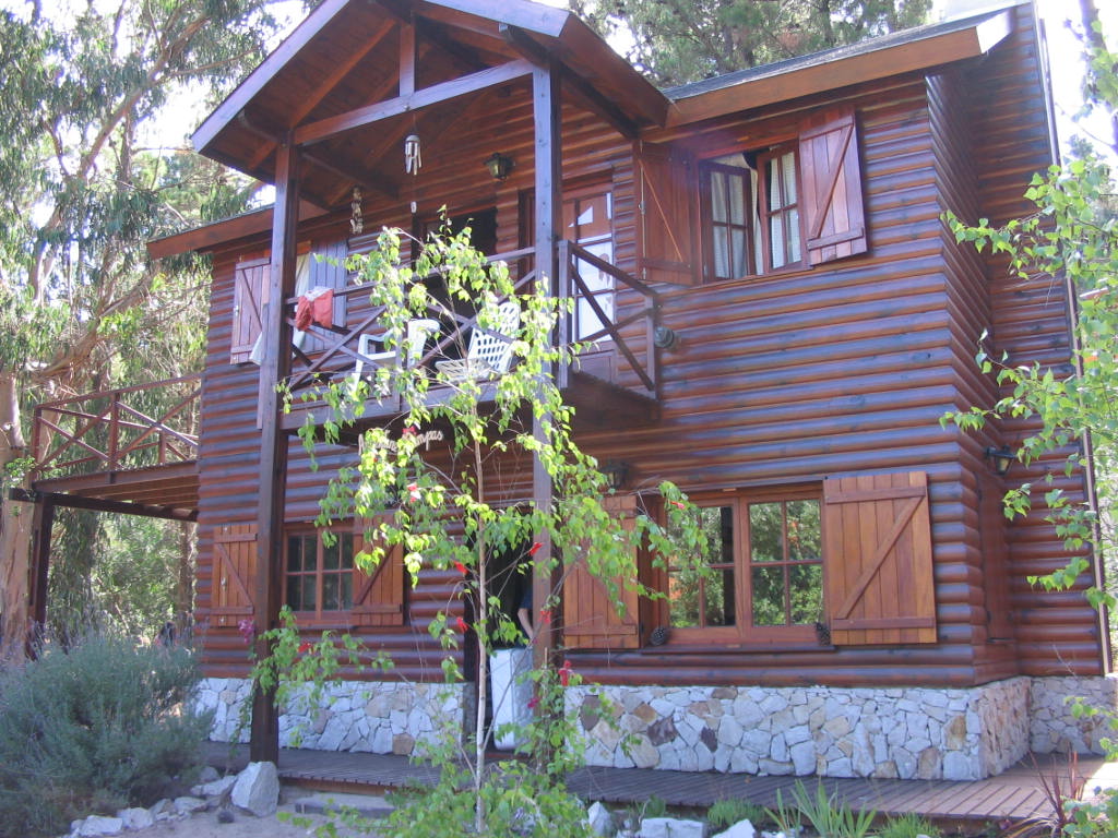 - Cabaña de troncos y piedra, con amplios decks, y estacionamiento de auto. Hecha artesanalmente, usando lo mejor de la madera de Mar de las Pampas, y la artesania del lugar.