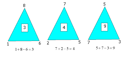 ¿Hay números en la zona exterior del triángulo? ¿Puedes