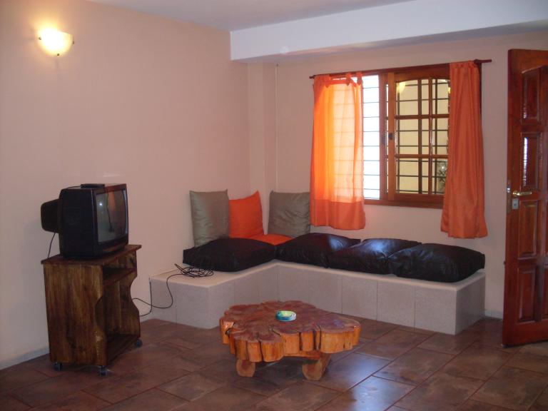 3 amb . 2 baños, garage cerrado, amplio terreno, tv x cable, cap. 5 pers. dist. 6 cuadras del mar |