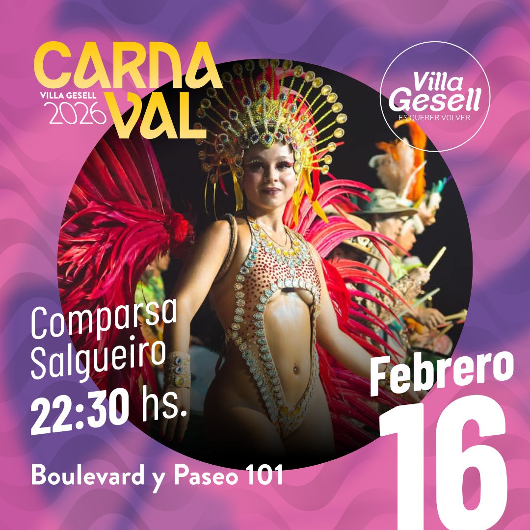 Villa Gesell se prepara para vivir una nueva edición de los Carnavales 2026, que se desarrollarán los días 14, 15 y 16 de febrero en el Boulevard y Paseo 101, con entrada libre y gratuita.