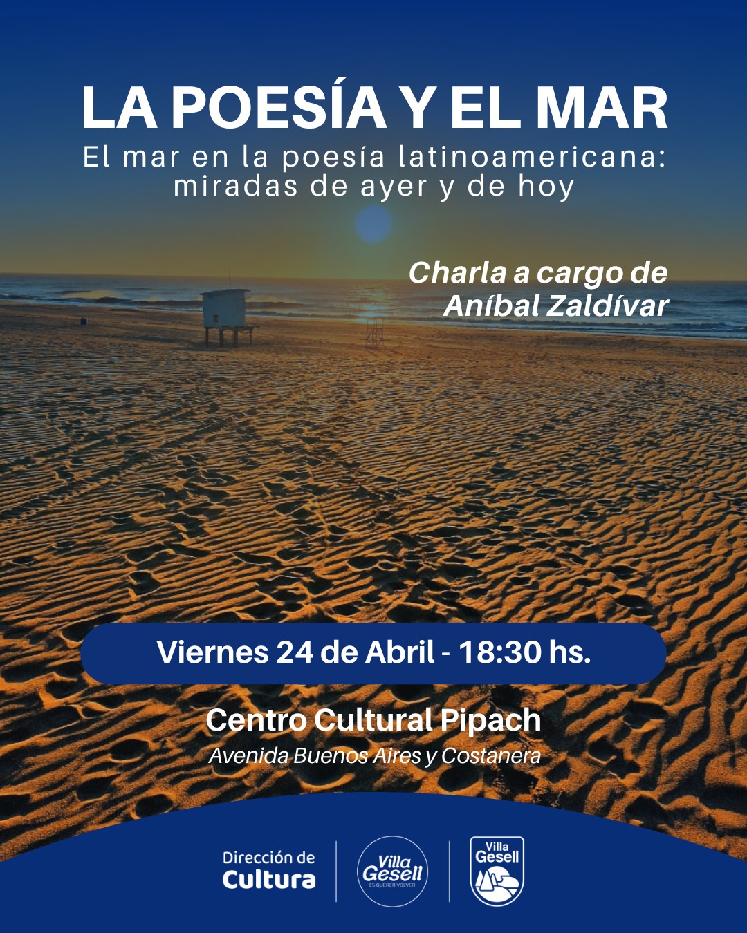 El Centro Cultural Pipach será escenario de una nueva edición del ciclo “La Poesía y el Mar”, que se llevará a cabo el próximo viernes 24 de abril a las 18:30 horas, con entrada libre y gratuita.
