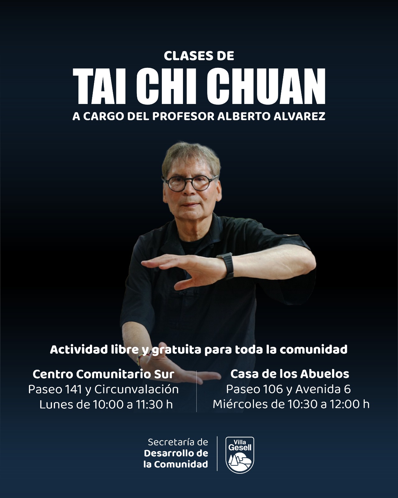 La Secretaría de Desarrollo de la Comunidad invita a la comunidad a participar del taller de Tai Chi, una propuesta orientada al bienestar integral que estará a cargo de Alberto Álvarez.