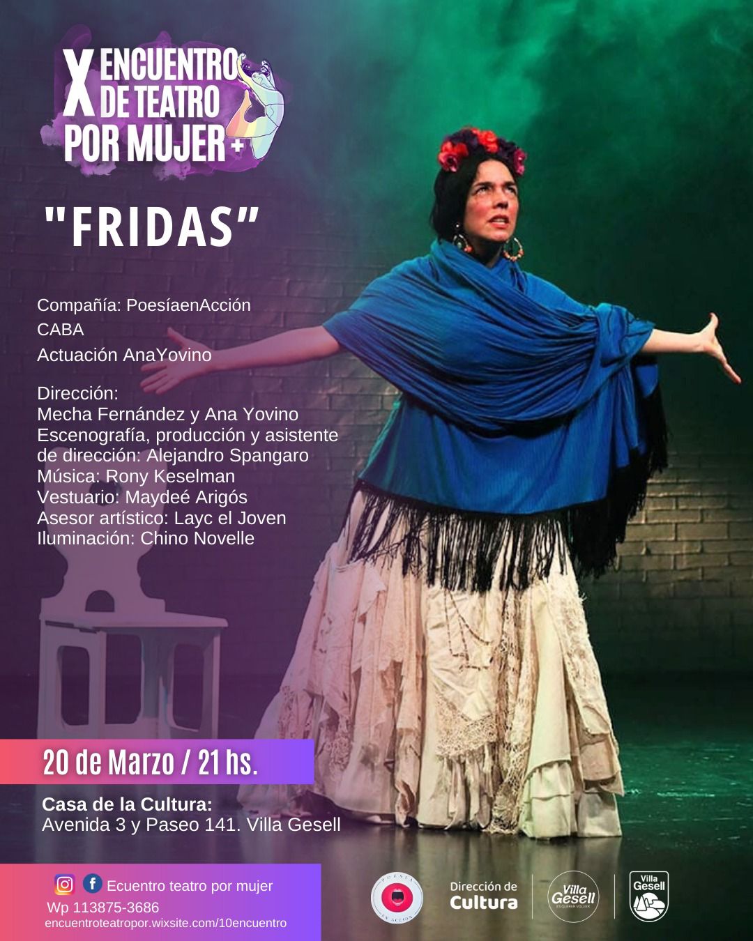 En el marco de la programación, se presentará la obra “Fridas” a las 21:00 horas en la Casa de la Cultura, con entradas a $10.000, promoción 2×1 anticipada y descuentos para jubilados y estudiantes.
